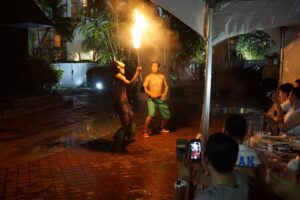 夕食はポリネシアンショーを見ながらバーベキュー(2年生)
