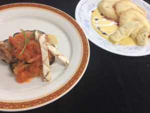 調理科のBLOG 鶏肉のソテー菜園風とりんごとバナナのべニエ 2年調理科 ホーム > ブログ > コースのBLOG > 調理科のBLOG > 鶏肉のソテー菜園風とりんごとバナナのべニエ 2年調理科 更新日:2017年12月19日 ベニエは英語ではフリッターと呼ばれており、メレンゲの生地を潰さないように手早く揚げないと柔らかい生地にはなりません。 鶏肉のソテーは付け合わせに ナスとエリンギを盛り付け それぞれひと手間加えました。