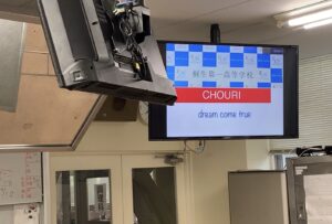 夏休み中に調理科実習室に今までモニターが1台が モニター3台・タブレット1台設置となり(製菓実習室は5月設置)
