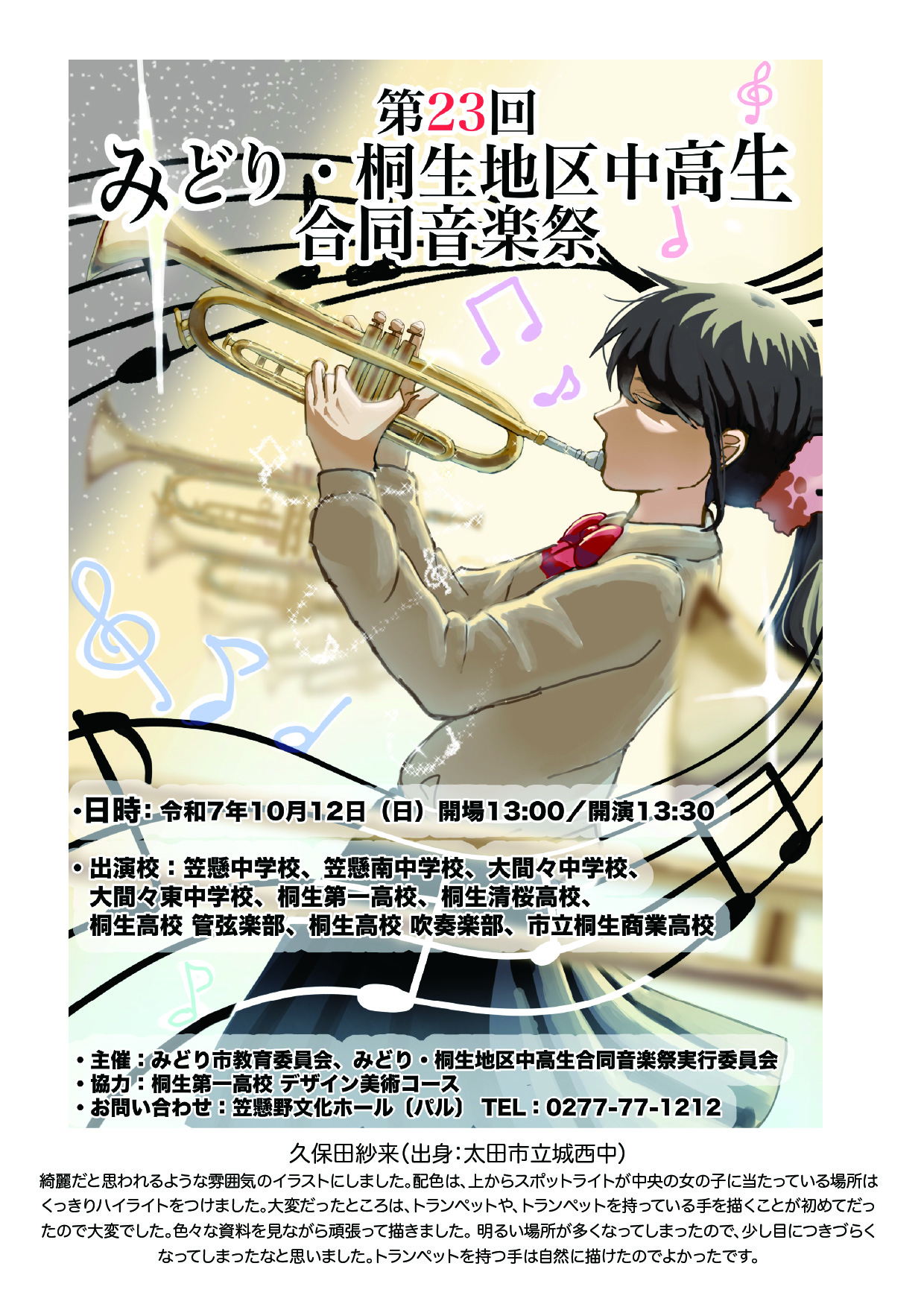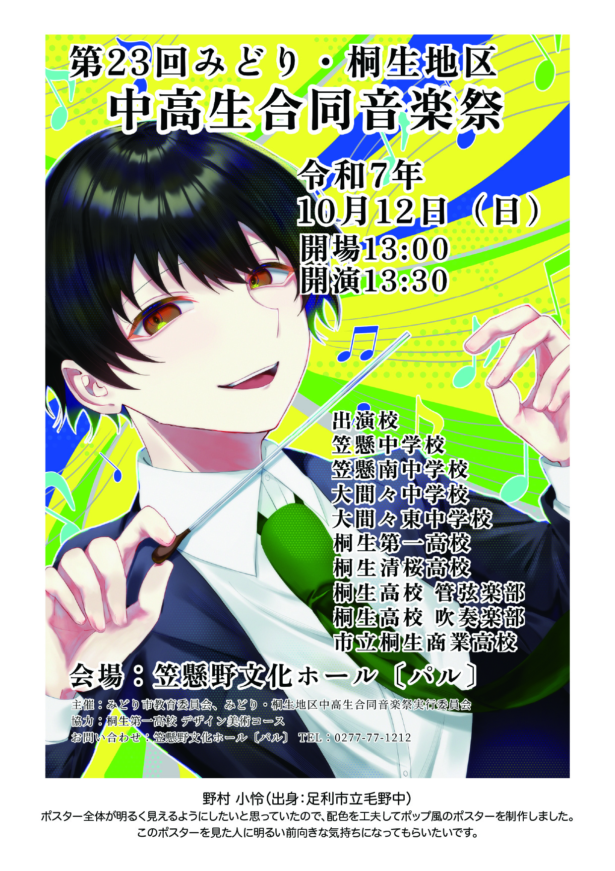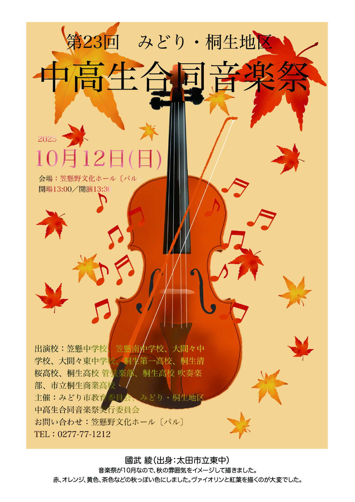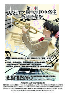 「第23回みどり・桐生地区中高生合同音楽祭(10/12(日)」開催のお知らせ