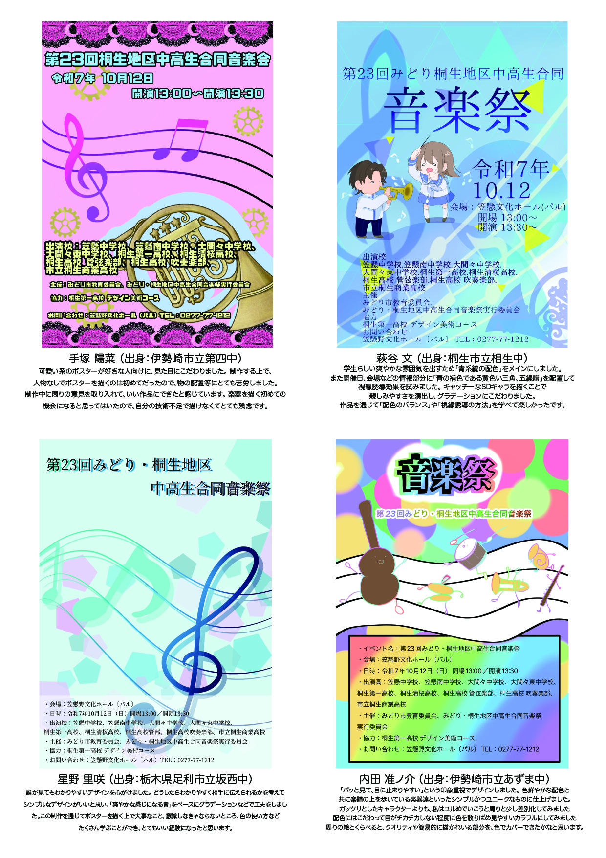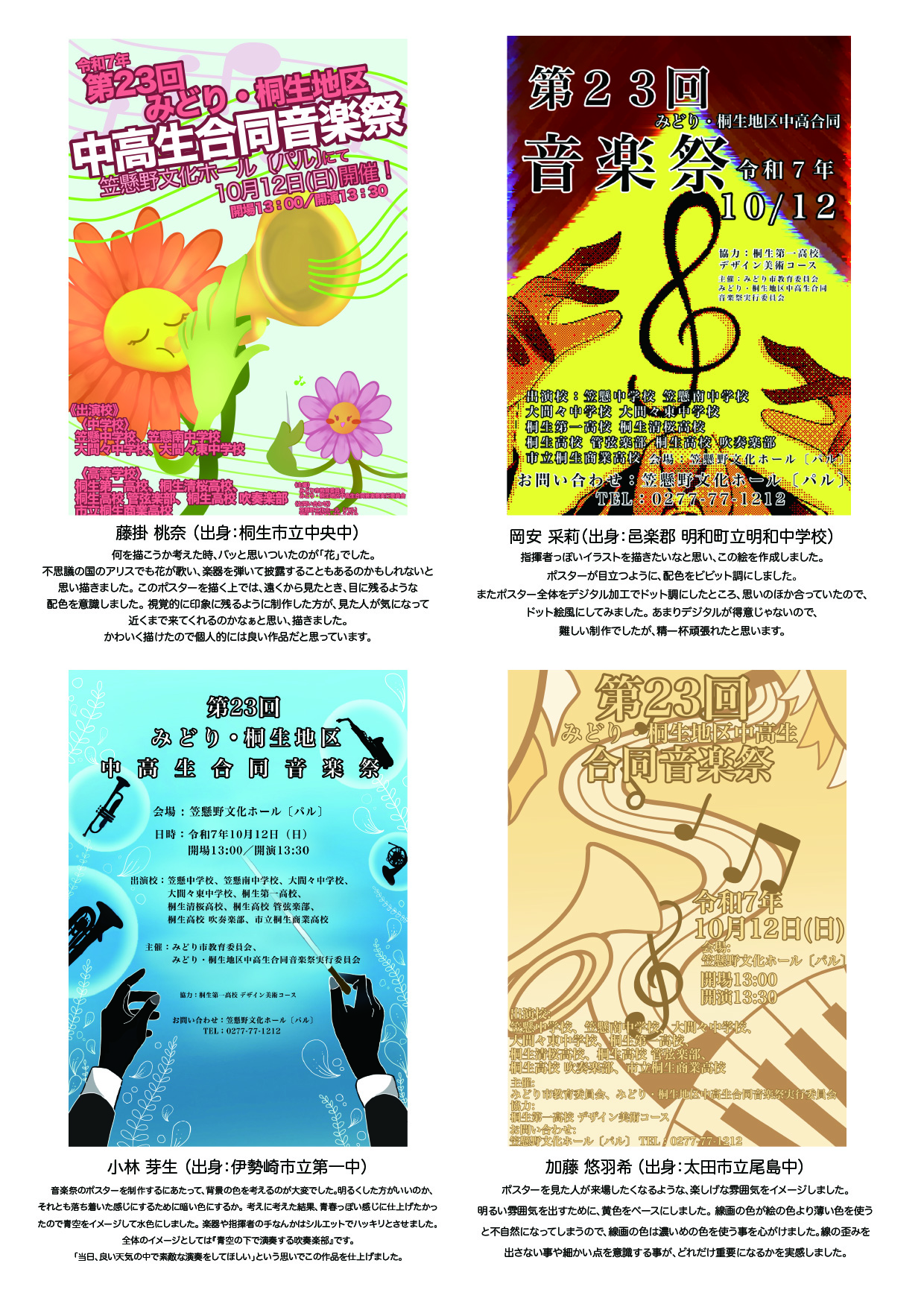 ぜひ「吹奏楽部の演奏」「デザイン美術コースのポスター」から