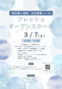 文化教養コースに興味のある、中学1年生・2年生対象のオープンスクールです。