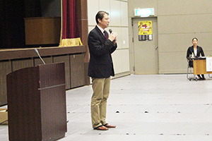 講演会後、お礼の言葉と花束贈呈。