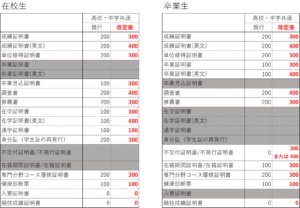 本校では、現行の各種証明書発行ルールについて、令和8年4月1日より、下記のとおり改定することと致しましたので、事前にお知らせ致します。